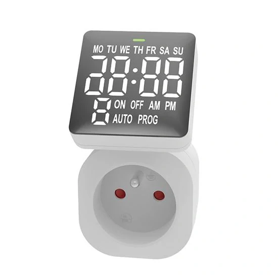 Tento časovač je vybaven inverzním LCD displejem s velkými znaky a úhlopříčkou 7 cm, který lze natočit pro lepší čitelnost. Nabízí 8 denních spínacích cyklů a 15 skupin pro nastavení různých dní. Disponuje dětskými pojistkami, pamětí pro uchování nastavených hodnot a možností vypnutí displeje. Přesnost nastavení je 1 minuta, provozní teplota -10°C až +40°C. Napájení 230V/16A (3680W).- výborně čitelný inverzní LCD displej s velkými znaky a úhlopříčkou 7 cm
