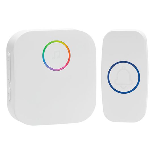 Tento bezdrátový zvonek nabízí více než jen zvuk – díky barevnému LED kroužku vás upozorní i opticky. Přijímač umožňuje přehrát si nastavenou melodii ještě před výběrem nové, díky tlačítku na přední straně. S dosahem až 180 metrů v otevřeném prostoru je vhodný i pro větší domy, kanceláře nebo provozovny.